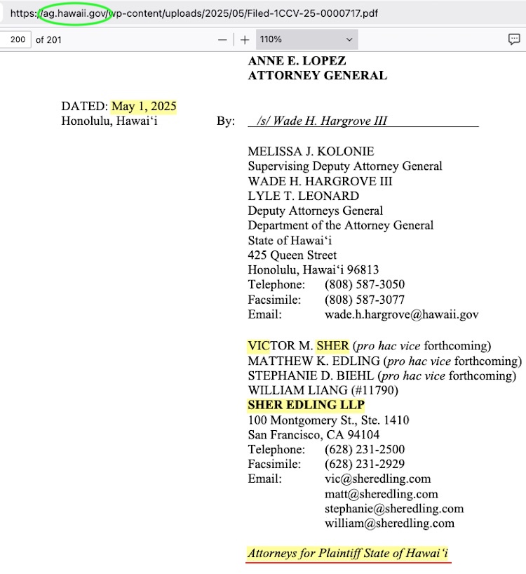 But we have a problem here, maybe a particularly huge one. While the key accusation narratives do indeed repeat like clockwork … this is not a Sher Edling boilerplate copy lawsuit. It’s a Hagens-Berman filing. They’re based in Seattle. But watch what happens when you compare this filing to the San Francisco Sher Edling law firm’s filing they did for the state of Hawaii in May 2025, plus one of their others filed in late 2023. I’ll start with Sher Edling’s trademark four accusation elements first, color coding my screencaptures below from each filing to show the shared words. Continue reading
