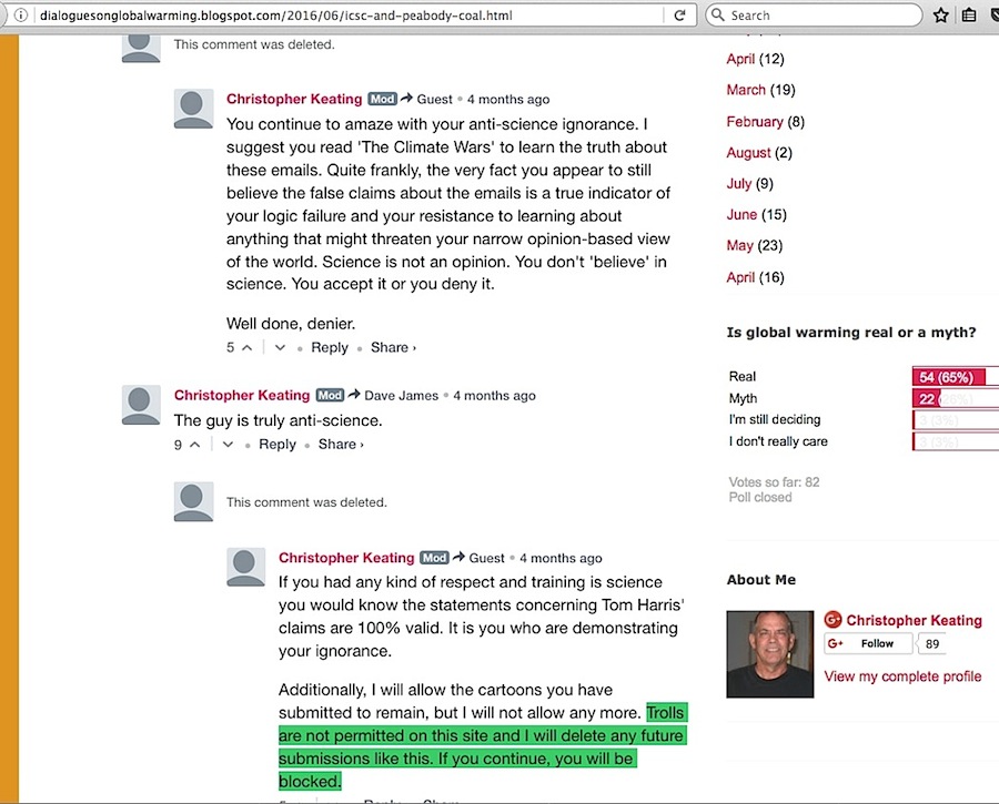 Keating deletes & blocks