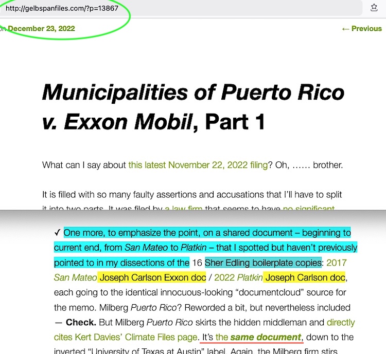 Let’s look at one more instance within Kennedy here, concerning an item I brought up in my Part 1 dissection of the (supposedly-totally-unrelated-to-Sher-Edling) Milberg Coleman law firm’s Puerto Rico v Exxon filing:
