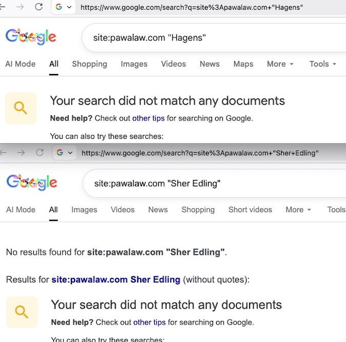 Way too much shared content to be a pure coincidence. But as I pointed out in my April 2025 blog post concerning what appears to be widespread plagiarism involving supposedly unrelated law firms and law offices, this all does not really look like attorneys in one office copying some other law office’s “homework.”
