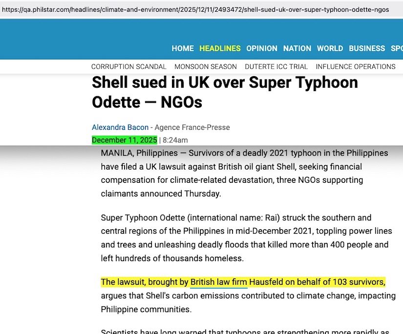 See how this all stacks up in a way that’s not helpful for the folks pushing climate litigation lawsuits? If Greenpeace Philippines put out that ‘Franta bit’ because it is in the actual Hausfeld UK lawsuit document where they cite him as one of their ‘evidence’ sources, it doesn’t look good in the least how this newest of all climate damages lawsuits may plunge off a precipitous credibility cliff even higher that what the current U.S. “ExxonKnew” lawsuits have flown off, … whereupon those with then crash right after it, exposing where the real disinformation has been in the climate issue for the last nearly thirty years.
