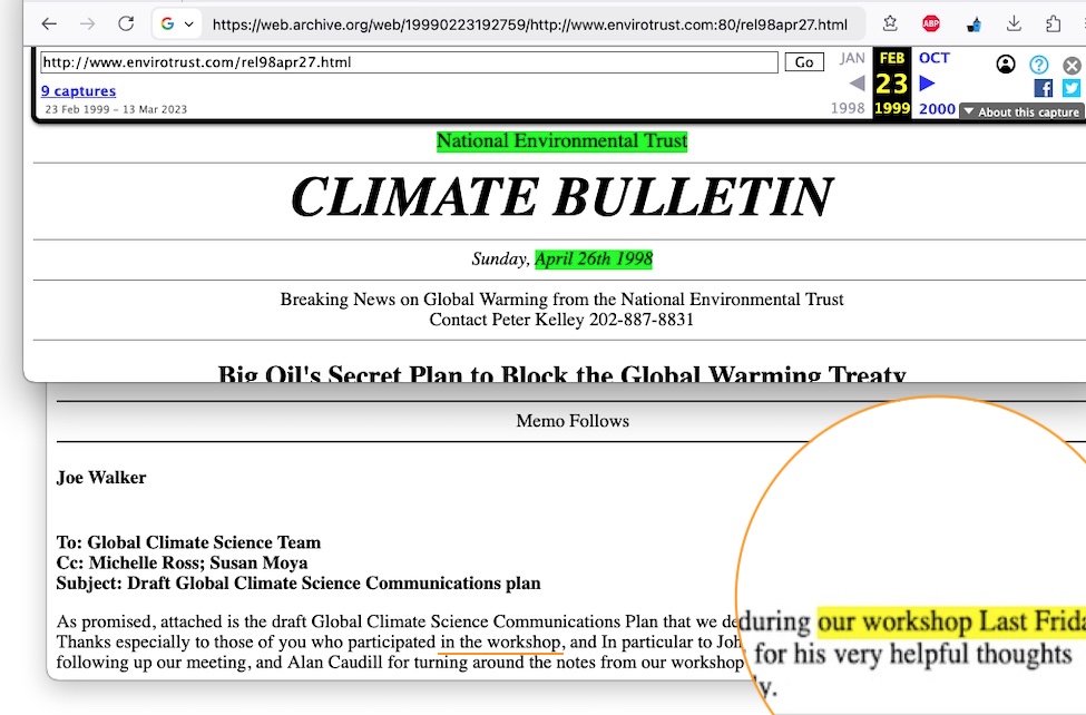 No, it isn’t. No need to trust me on this, for the easiest possible way for read the memo in unabridged form, I’ve uploaded the old (long ago missing from the internet) archive version of the transcribed 1998 text that the National Environmental Trust had online – it’s here in my PDF file copy. Skip past the Page 1 email intro by Joe Walker, the balance of it is the actual verbatim memo transcribed long ago from Greenpeace’s horrid degraded photocopy scans. Dullsville, it reads like a bunch of common sense truisms.