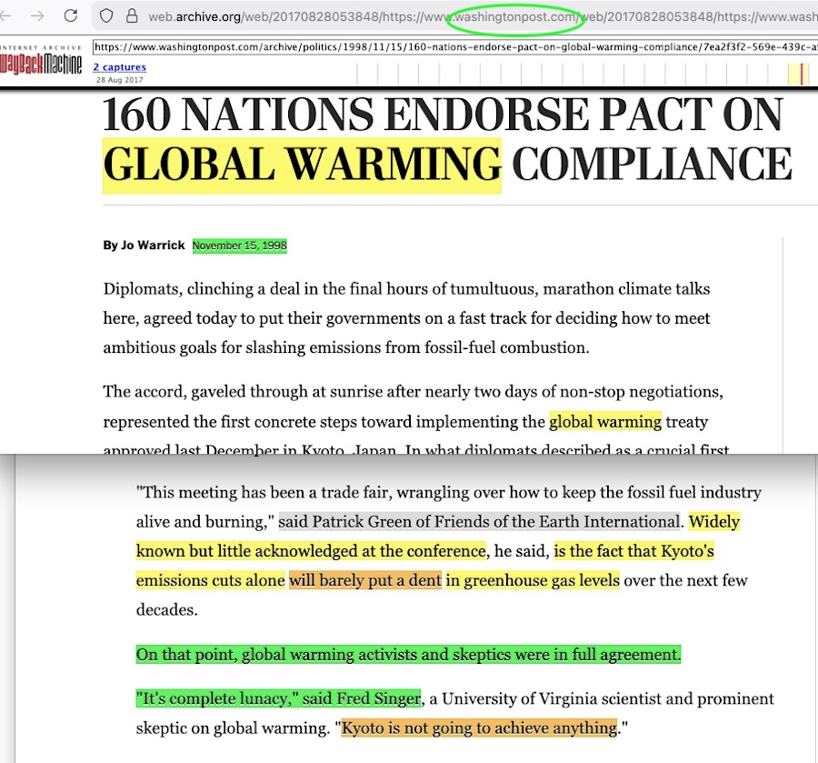 #4 No, the news media at the time was conveying to the time that global warming – a distinction with a huge difference – was a big deal, while massively limiting viewpoints from skeptic climate scientists / expert speakers on the topic who were saying the Kyoto Protocol was a very ill-conceived effort and was ill-equipped to solve a literally non-existent problem. The irony at the time was how enviro-activists actually agreed with the “ill-equipped” bit.