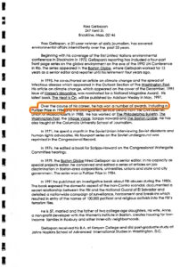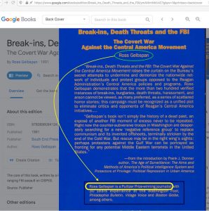 Here’s the back cover of his 1991 “Break-ins, Death Threats and the FBI” book (click image to enlarge), where it plainly says in a dark border box at the bottom, “Ross Gelbspan is a Pulitzer Prize-winning journalist with 30 years experience…”.