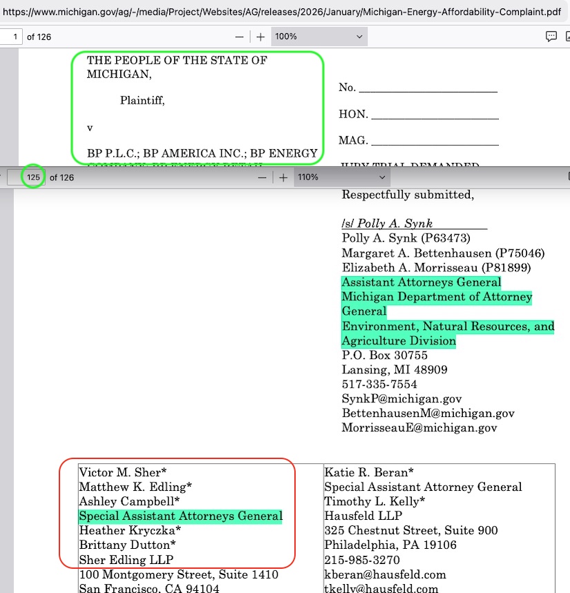 But while this new 1/23/25 Michigan v BP filing gives Sher Edling ‘top billing’ for its assistant firms, it doesn’t follow Sher Edling’s typical copy ’n paste template. Continue reading