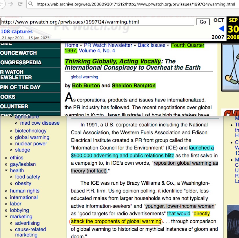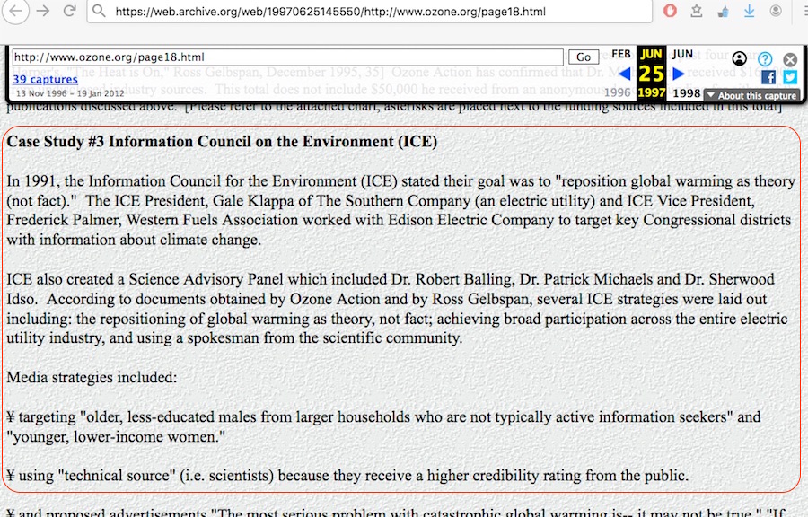 There’s a large coal operation called Western Fuels, it’s a $400 million coal operation, in their 1991 annual report, they were very candid, they said “We want to attack mainstream science …”