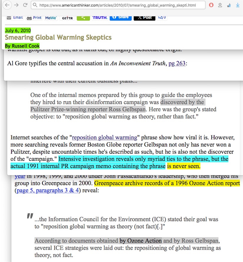 Like I said in my Oct 2015 blog post, I would’ve been lost without Sharon Beder when it came to finally being able to find the elusive “reposition global warming” memo set, after many months of a fruitless search. In 2009-2010 Ross Gelbspan alone was widely credited for exposing them, but nobody linked straight to them for the public to see them for stand-alone judgement. After I found them, I was the first to link straight to them in what is now an offline Greenpeace Investigations scans file, because I could readily see there was nothing actually damaging in them.