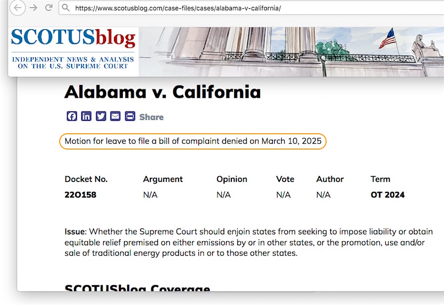 Maybe these AGs thought all this ‘evidence’ dumped on the Supreme Court would get overlooked. They apparently accomplished that feat — Alabama et al.‘s complaint was denied on March 10, 2025.