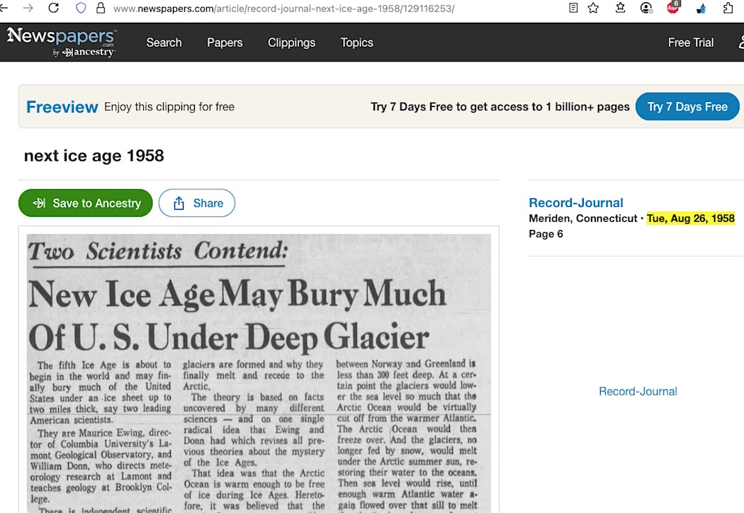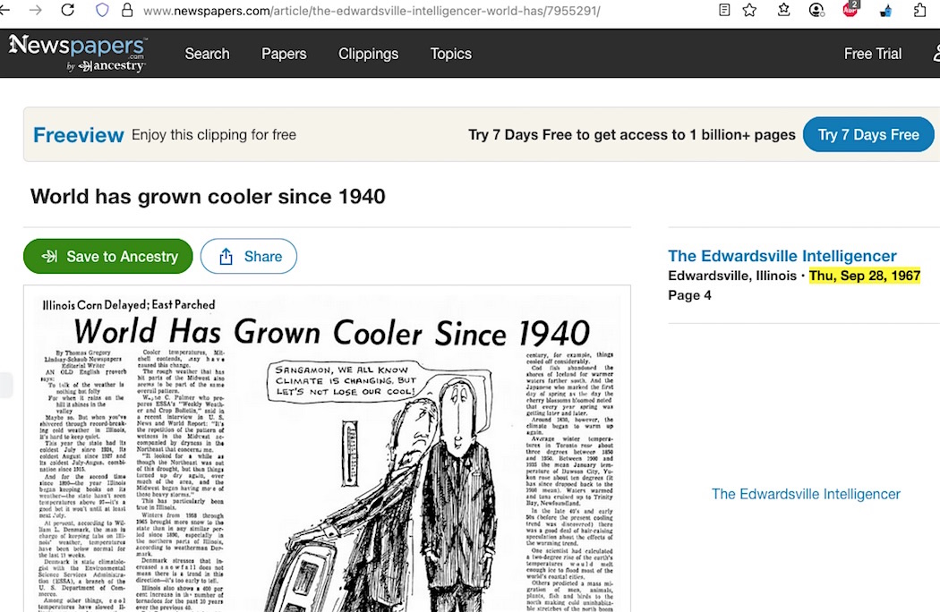 That one alone effectively kills the “ExxonKnew” lawsuits, when in the face of all the news from the 1950s / ’60s / ’70s, that the scary prospect was for a cooling world.