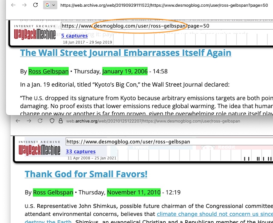 That place is nothing more than a one-sided propaganda site, their original name was DeSmogblog, co-founded by James Hoggan (the guy in the sunglasses at Naomi Oreskes’ La Jolla workshop) as a blog having the express intent of taking down lying skeptic climate scientists. Who inspired him to do this? Ross Gelbspan. Who self-confessed no later than 8 seconds into an audio interview as being Desmogblog’s other co-founder? Ross Gelbspan. Who did Al Gore say was the discoverer of the “reposition global warming” memos? Ross Gelbspan. He wrote wrote over 500 blog posts for DeSmogblog as their star blogger from January 2006 to November 2010, the place that was built on his fame of ‘exposing the “reposition global warming” memos.