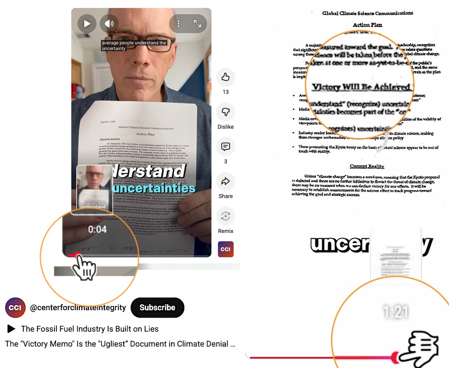 Of course, that’s not what Exxon or Chevron wanted to have happen. They knew that the science certainty was what was making governments take action, basically. They talk about targeting the media, members of Congress, science teachers, to try to get them to think differently and speak differently about climate change, to express uncertainty rather than urgency or a crisis of any kind. …